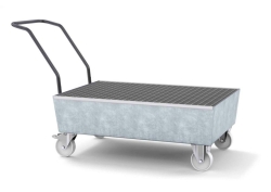 Auffangwanne Stahl verzinkt fahrbar, Gitterrost, 850x1450x1150mmAuffangwanne Stahl verzinkt fahrbar, Gitterrost, 850x1450x1150mm