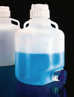 Ballonflasche Nalgene™ Typ 2319, 2250, mit Henkel, PPMit Schraubverschluss Ø 83 mm. Mit Schulterhenkeln. Autoklavierbar. Graduiert. Für Nährmedien, destilliertes Wasser oder andere Lösungen. Auslaufsicher. Nicht mit aggressiven Substanzen verwenden. Öffnung auch für Stopfen mit 36 mm Höhe und einem Ø oben/unten von 75/62 mm geeignet. Zum Autoklavieren Verschluss entfernen oder entsprechend belüftbaren Verschluss benutzen. | |||||||||||||||||||||||||||||||||||||||||||