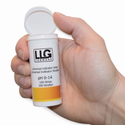 LLG-Universal Indikatorstäbchen "Premium", in SchnappdeckeldoseDie LLG-pH-Indikatorstreifen bieten ein komfortables Handling für jedes Labor. Der mit der Dose verbundene Schnappdeckel läßt sich leicht mit einer Hand öffnen und schließen.