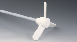 Die Rührwellen bestehen aus einer PTFE-ummantelten Edelstahlwelle und einer Rühreinheit aus Voll-PTFE. Der Edelstahlkern sorgt für die nötige Stabilität der Rührwelle und lässt eine sichere Befestigung im Rührwerk zu. Durch den dicken PTFE-Überzug und die Rühreinheit aus Voll-PTFE kommt das Medium ausschließlich mit PTFE in Berührung. Die chemische Beständigkeit ist daher nahezu universell. PTFE ist extrem antihaftend und verhindert weitgehend Anlagerungen an der Welle und der Rühreinheit. Die Rührwellen stimmen maßlich mit den (KPG) Glas-Rührwellen überein und sind dadurch jederzeit austauschbar.