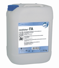 "Klassischer" alkalischer Reiniger für die maschinelle Aufbereitung von thermostabilen und thermolabilen Instrumenten, Flüssigkonzentrat. Sehr gute Reinigungswirkung mit hoher Materialverträglichkeit. Entfernt Blut, Eiweiß, Serum, Nährbodenreste und Gelatine. Frei von Tensiden und Oxidationsmitteln. | |||||||||||||||||||||||||||||||||